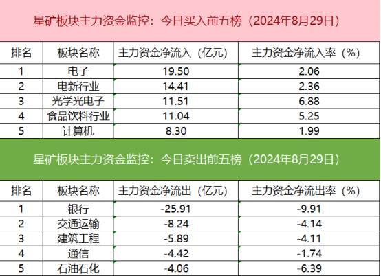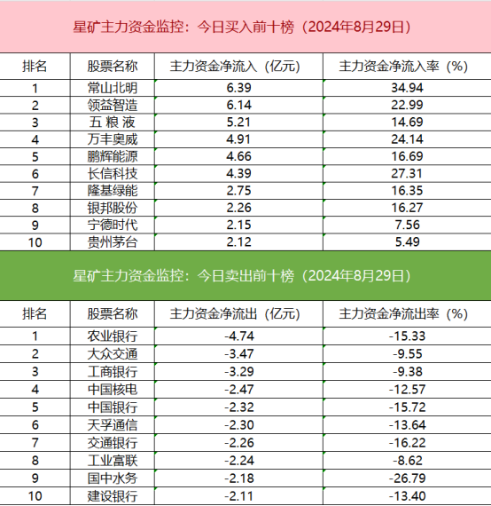 ①多只银行股位居主力资金净流出前十行列,其中农业银行净流出居首;