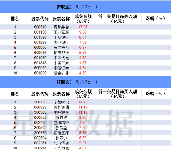 从沪股通前十大成交个股来看,贵州茅台位居首位,工商银行、农业银行等多只银行股位居前十行列。