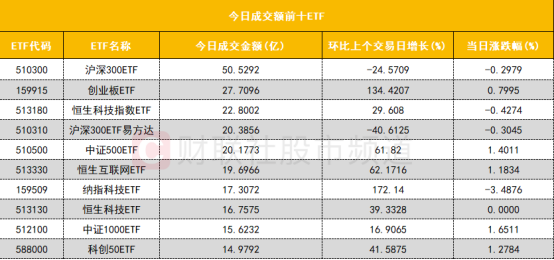 从成交额前十的ETF来看,沪深300ETF(510300)成交额位居首位,三只恒指相关ETF位居前十行列。
