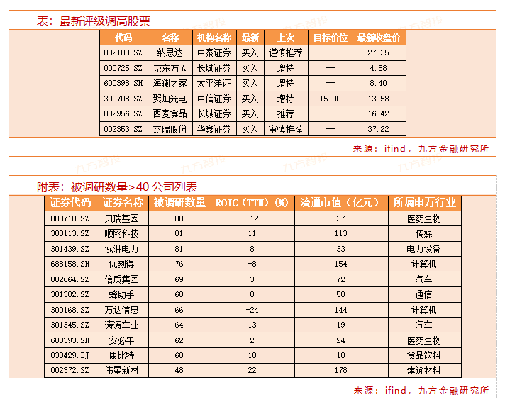 近5日有6家公司获得券商调高评级,其中聚灿光电获得明确的目标价格。