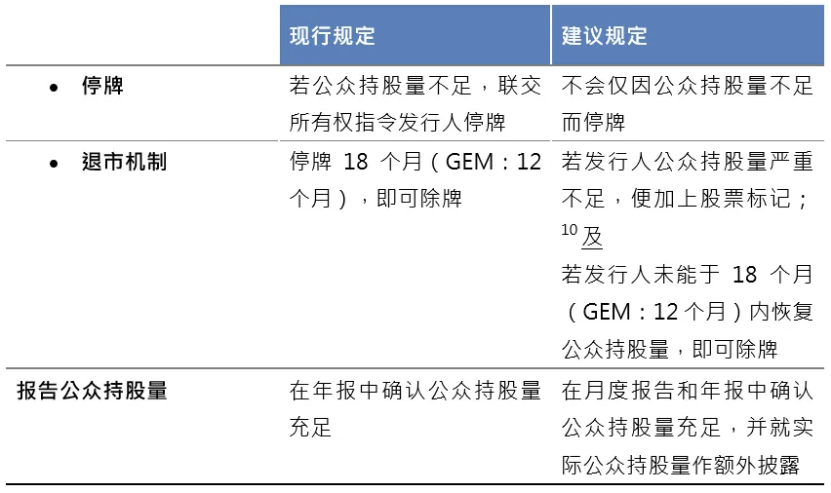 因应市场对设立适当的持续公众持股量规定的意见,联交所亦就有关规定的详细建议展开进一步咨询。
