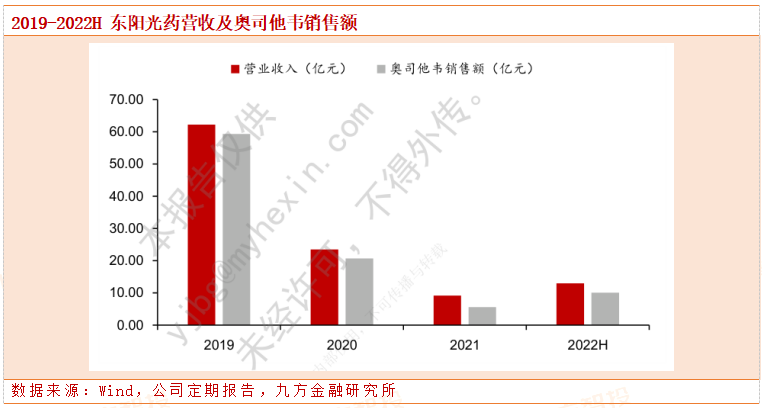 用药上来看,化药主要关注产品奥司他韦,国内巅峰期销售额达到60亿元水平。疫情期间由于门诊量受到影响,同时佩戴口罩后呼吸类疾病整体发病率下降,2019-2021年流感用药销售额下滑。以东阳光药为例,2019-2021 年奥司他韦(可威)销售额分别为 59/21/6亿元,2022年上半年销售收入恢复较快,达10亿元。重点公司:东阳光药,以及拥有仿制品种的博瑞医药、科伦药业、齐鲁制药等。