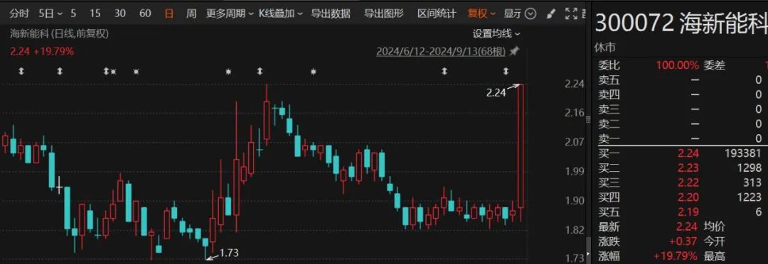 从股价有亮点表现的公司来看,海新能科、新能泰山、本钢板材均在9月13日迎来首板,海新能科、新能泰山是本周股价累计涨幅排名前两位的机构调研股,分别上涨20.43%、14.80%。