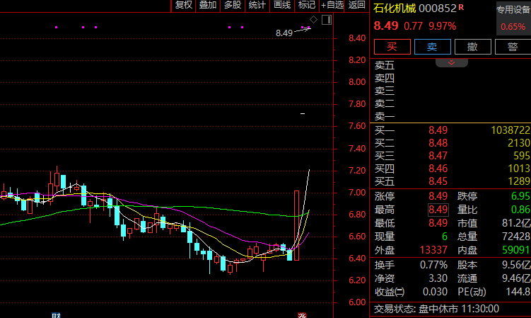 页岩气、油气开采、化纤、塑料等细分板块也纷纷走强,中裕科技在昨日30%涨停基础上,今日盘中再度触及涨停,石化机械(000852)、神开股份均一字涨停,并连续第3日封板块,山东墨龙、黄河旋风等也纷纷走出连板行情。