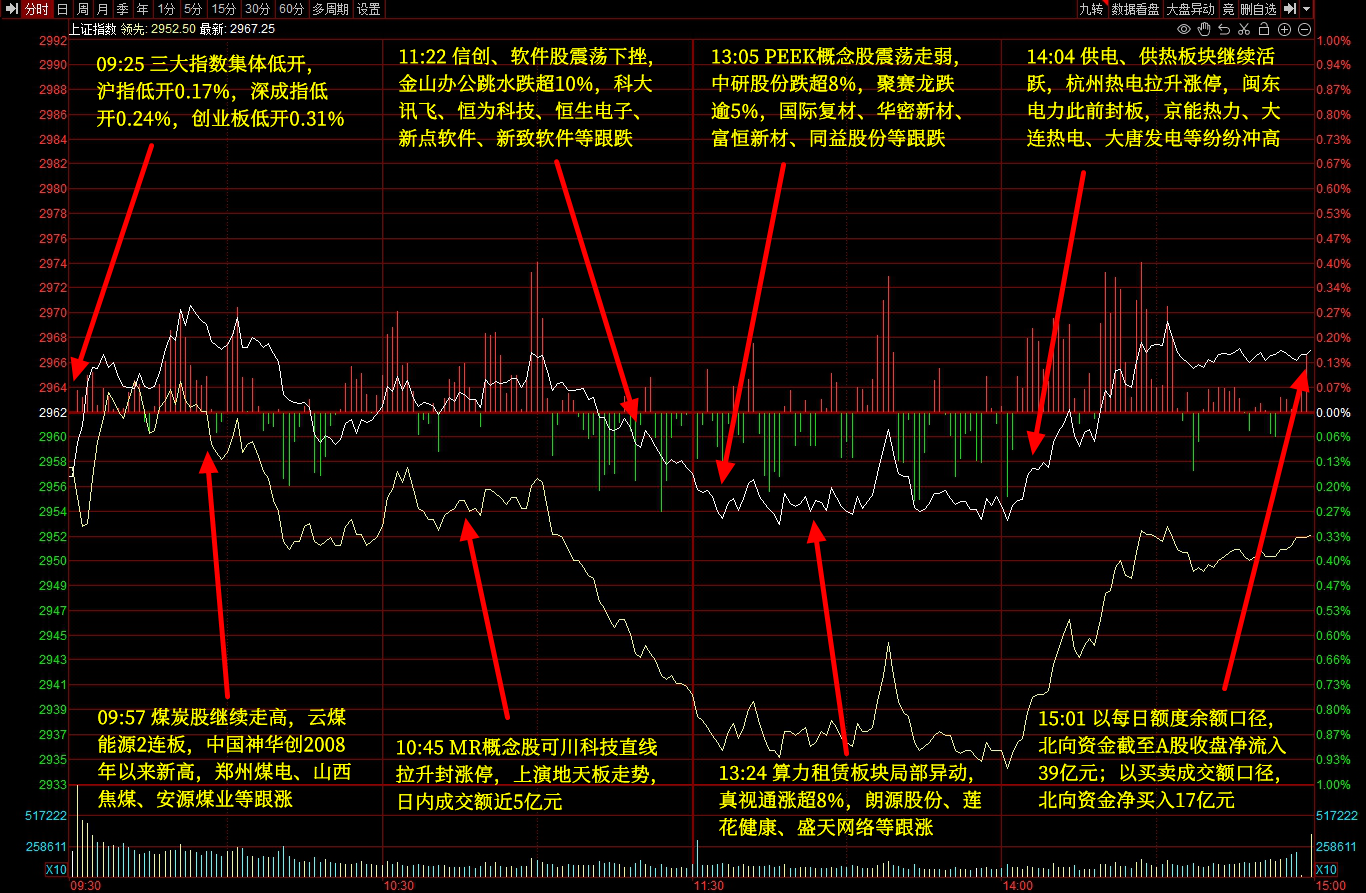 【1月3日】今日周三,A股震荡分化,沪指小幅反弹,创业板指跌超1%。截至收盘,沪指涨0.17%,报2967.25点;深成指跌0.75%,报9330.86点;创业板指跌1.14%,报1834.73点。