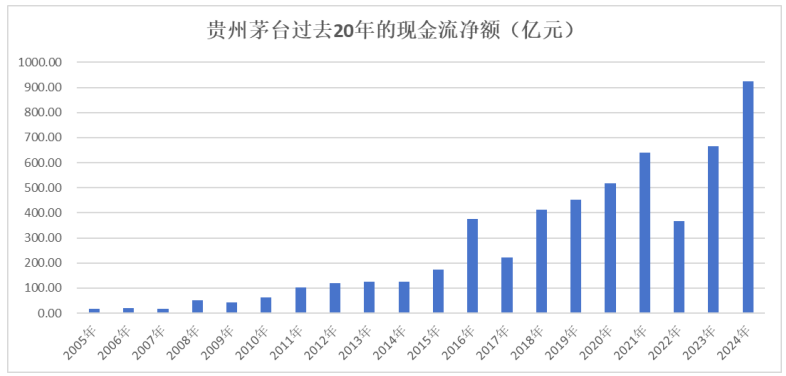 2011年,贵州茅台现金流净额首次突破百亿元,成为首家百亿现金流净额的上市白酒企业。2024年,公司现金流净额创历史新高,达到924.64亿元,同比增长近40%,主要系报告期内公司销售商品收到的现金增加及控股子公司贵州茅台集团财务有限公司归集集团公司其他成员单位资金较上期增加。