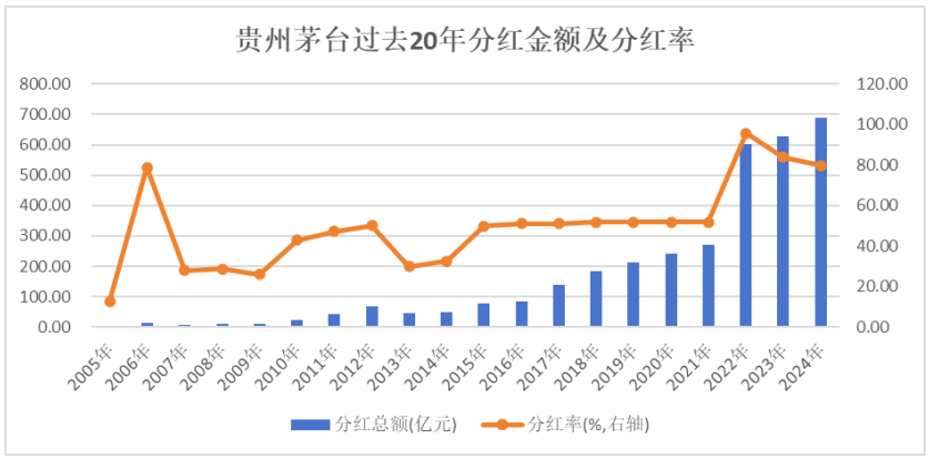 上市20余年来,截至2024年末(含已宣告),公司累计分红超过3360亿元,位居A股上市公司分红榜前列,位居食品饮料行业首位;上市以来累计分红率超过60%。