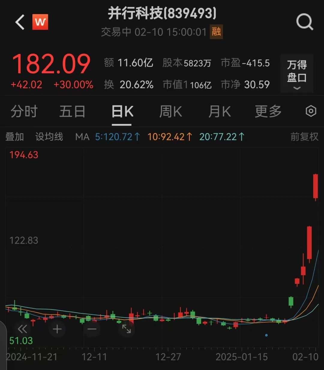 据证券时报·数据宝统计,截至2月10日收盘,1月27日以来的短短5个交易日内,并行科技累计涨幅达到182.18%,排名同期A股涨幅榜第一位,成为本轮人工智能(AI)行情的最大黑马。在并行科技的带动下,北交所股票近日成交活跃度开始大幅提升,今日盘面上,广脉科技、旭杰科技、云创数据、新赣江录得30cm涨停板。