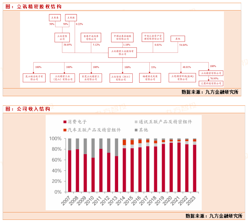王来春女士,现任立讯精密董事长、总经理。1988年起在台湾鸿海下属富士康线装事业部工作近10年,1997年离开富士康自主创业。王来春和王来胜(兄妹关系)通过立讯有限公司持股立讯精密合计40%,是公司的一致行动人及第一大股东、实际控制人。
