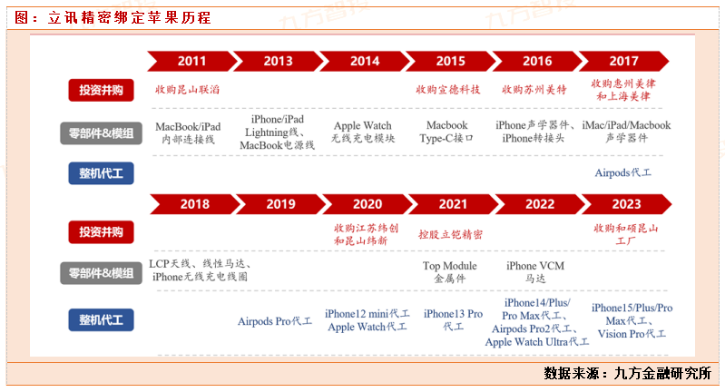 公司成长历程:04-09年,依靠富士康转出的订单,富士康高居公司第一大客户,主要产品为连接器。10年上市,上市后,2010年至2014年,公司通过并购强化连接器领域的优势,完善了下游的客户资源,形成产业链垂直一体化布局。先后收购了博硕科技、昆山联滔电子、深圳科尔通、东莞讯滔电子、福建源光电装、珠海双赢柔软电路等一系列连接器相关的公司。2017年至今:深度绑定苹果,2020年7月收购江苏纬创、昆山纬新——切入苹果手机组装;2020年12月收购高伟电子45%股权——苹果手机摄像头;2021年2月收购日铠50%股份——切入苹果机壳;2022年12月收购光宝影像事业部——深入相机业务。