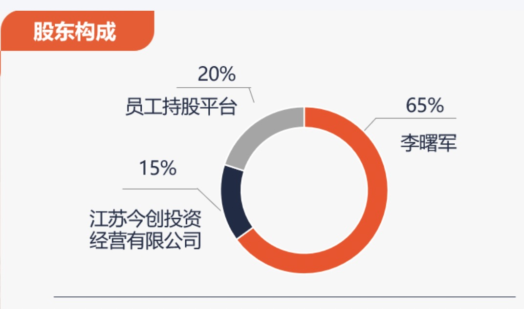恒越基金官网显示,该公司的控股股东为李曙军,持股比例为65%。此外,员工持股平台持有恒越基金20%股份,江苏今创投资经营有限公司持有公司15%股份。