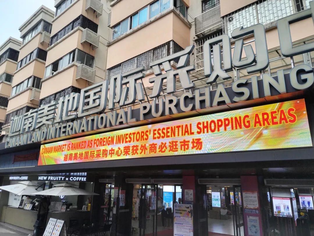 位于广州越秀区的迦南美地国际采购中心,又被称作“迦南外贸服装城”,是一家主要经营外贸服装的批发中心,曾获得“外商必逛商场”的称号。在迦南外贸服装城内,记者也看到了不少外商的身影,有的在不同门店中穿梭寻觅,有的则在店主的热情招待下亲手体验服装的质感。临近晚餐时,位于该商场一楼的餐厅内也坐满了外商客人。