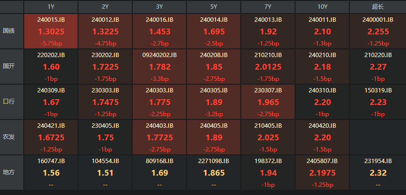 近期短端品种加速下行势头强劲,3年期以下的国债品种已悉数跌至1.5%下方,或显示监管对短端收益率下行的容忍度有所提高。