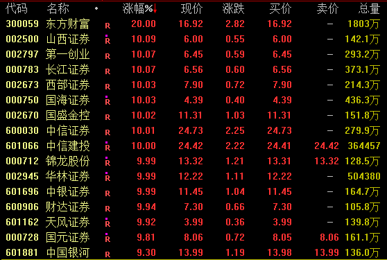 券商板块掀涨停潮