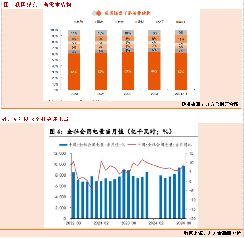 宏观政策刺激方面,央行会在近期出台降息,降准,降低存量房贷款利率等政策,来刺激国内整体经济。虽然今年以来经济持续低迷,但是预期四季度国内经济将触底回升,从而带动国内的电力需求。预期四季度后,电力整体需求增速将保持高增,带动煤炭需求增速超预期。具体宏观政策:9月24日,央行行长潘功胜宣布央行:近期下调存款准备金率0.5个百分点后,年底前根据市场情况可能进一步下调0.25到0.5个百分点,向金融市场提供长期流动性约1万亿元。中国人民银行主要负责人介绍,在房贷方面,将降低存量房贷利率并统一房贷最低首付比例。具体是:引导商业银行将存量房贷利率降至新发房贷利率附近,预计平均降幅大约在0.5个百分点左右。将全国层面的二套房贷最低首付比例由25%下调到15%,统一首套房和二套房的房贷最低首付比例。此次存量房贷利率降低50个基点,如以商贷额度100万元、贷款30年还款方式计算,每月月供减少大约280元,30年可以减少利息支出共10万元。整体来看,中国人民银行行长潘功胜表示,预计这一项政策将惠及5000万户家庭,1.5亿人口,平均每年减少家庭的利息支出总数大概1500亿元左右。