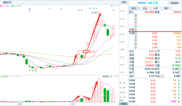 细节2:买入是等成交量在涨停板附近,再次高出20日均量线。