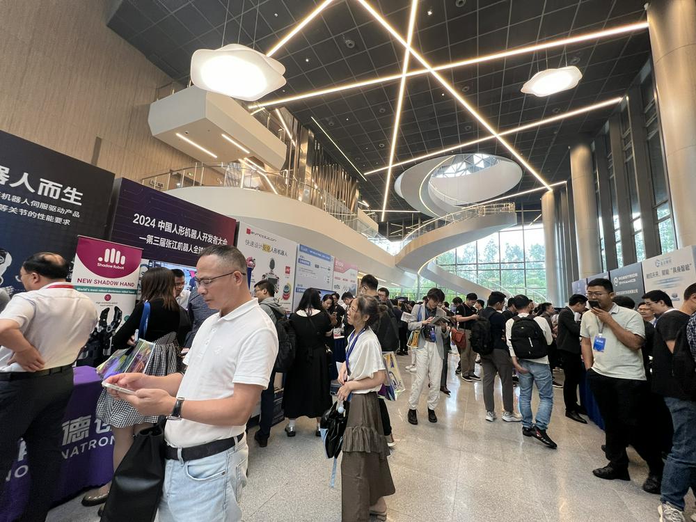 大会同期还举办了人形机器人创新产品展览展示,面积超800平方米,汇聚了约三十家机器人产业链上下游的企业。