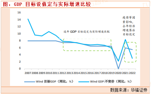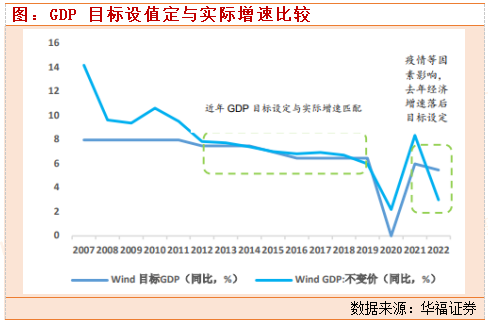 机构普遍认为2023年重要会议制定的GDP增速或将在5%或及以上,增速提升的主要原因来自于低基数、疫情防控政策逐步优化以及经济的自然修复。增速提升来自于2035年远景目标的要求:如果2035年实现人均GDP2万美元以上的水平,则从2023年开始,必须达到年均5%以上的GDP增速(详情参见华福证券2023年年度报告《政策发力、稳步修复》)。同时,当下经济以高质量发展为主题,过高的GDP增速目标可能性较低。