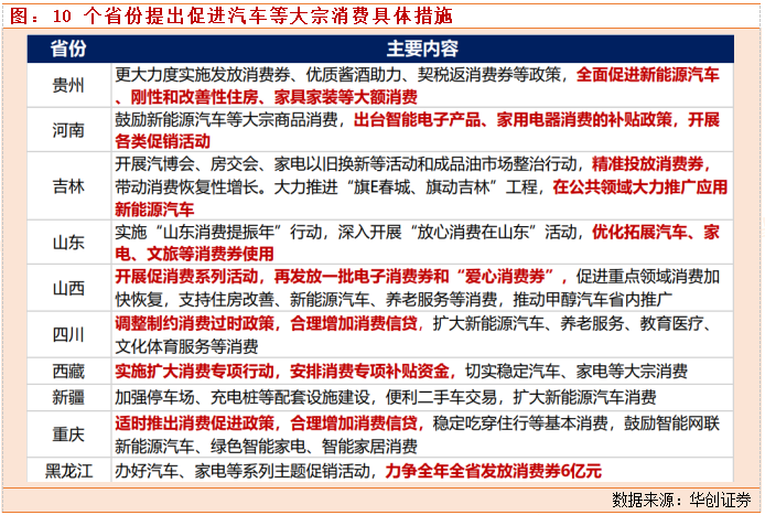 今年地方促消费的主线有两条:一是鼓励汽车等大宗消费;二是恢复旅游、养老等服务消费。汽车消费方面,绝大多数省份都提及要促进新能源汽车等大宗消费,其中10个省份提出了具体措施,这些措施主要包括3大类:发放消费券,增加消费信贷,发放消费补贴。旅游消费方面,海南、云南、贵州、湖南等6个旅游大省明确了旅游消费的具体目标,据此倒算出该6省预计旅游收入增速均值为28%,旅游收入较2019年恢复程度均值为100%。