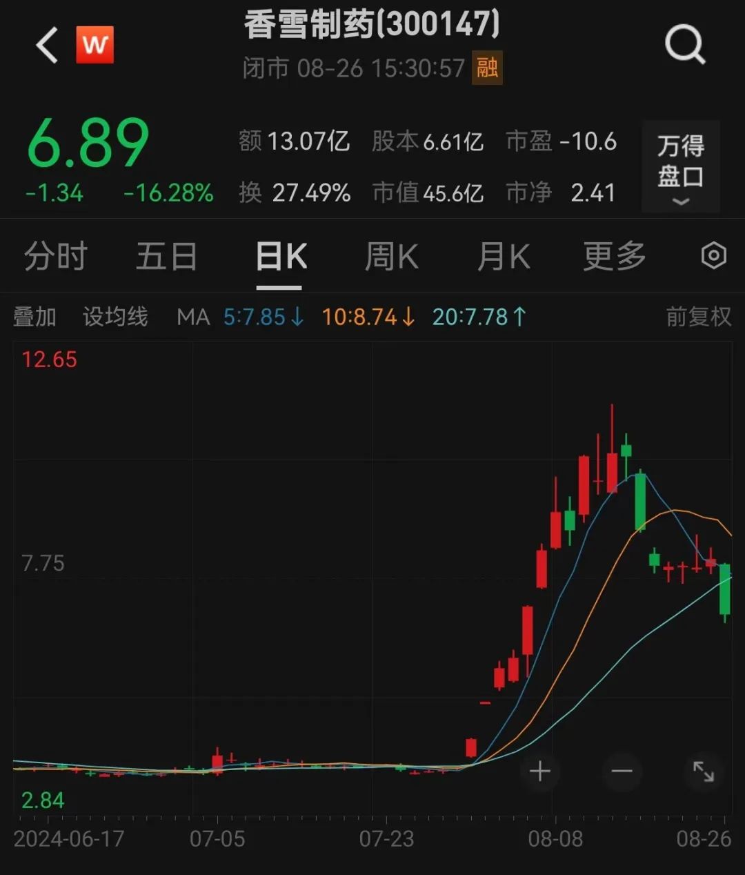 医疗龙头股价突然大跌