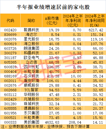 A股家电公司上半年业绩表现如何?据证券时报·数据宝统计,按照半年报、业绩快报、预告净利润下限计算(无下限取公告数值),上半年净利润同比增长(含扭亏为盈)的家电股有29只。毅昌科技、海达尔、星光股份、海立股份、朗迪集团等净利润增速靠前。