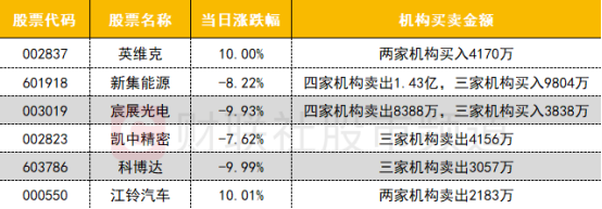 龙虎榜机构活跃度一般,买入方面,储能概念股英维克获机构买入超4000万。
