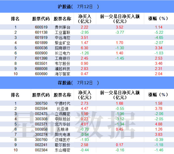 沪深股通两市前十大成交中净买入个股数量较多,净买入方面,招商银行净买入居首,获净买入超6亿;比亚迪、北方华创净买入分居二、三位,均获净买入超4亿。此外,两只芯片股澜起科技、韦尔股份,两只消费电子概念股歌尔股份、立讯精密均获净买入。