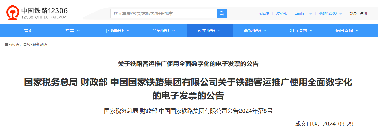 根据铁路部门规定,自2024年11月1日起,我国铁路客运领域推广使用全面数字化的电子发票,以方便旅客和单位报销铁路客票。