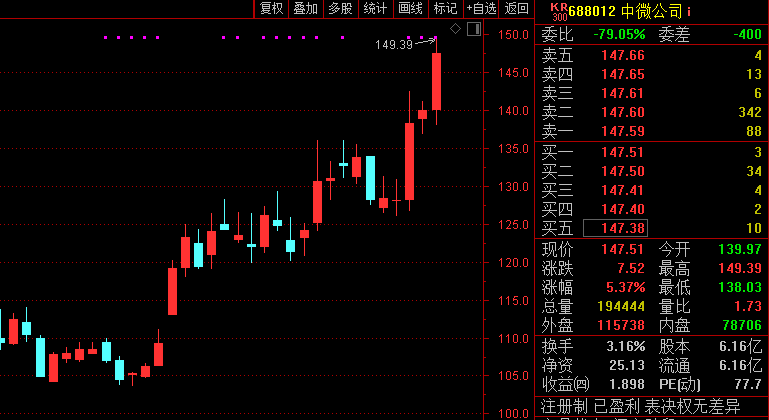 3月31日,A股半导体设备个股上涨,中微公司(688012)上涨5.37%,拓荆科技-U(688072)上涨3.53%。