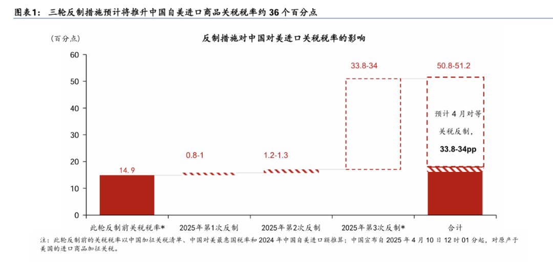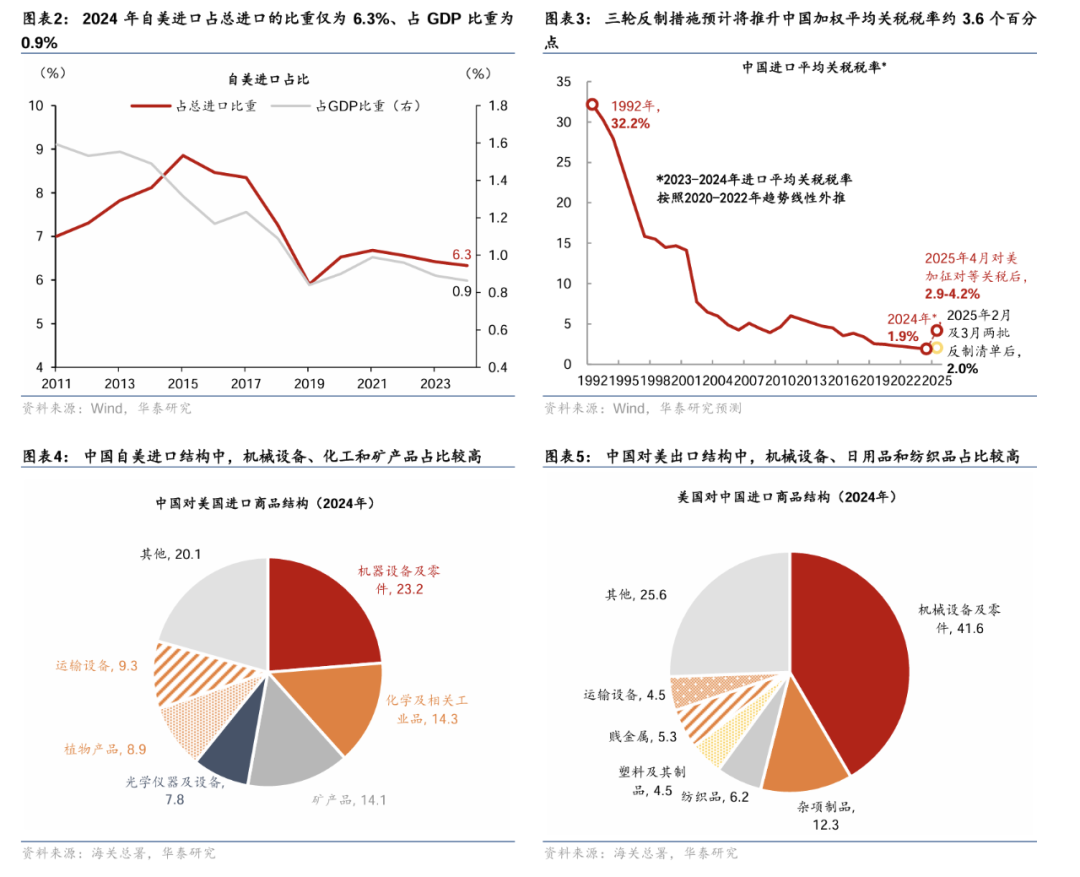 华泰证券研报指出,今年以来,中国对美采取了三轮反制措施,预计将推升对美关税税率约36个百分点,但由于近年来中国自美进口占比整体下降,反制措施对中国整体进口关税的影响有限。