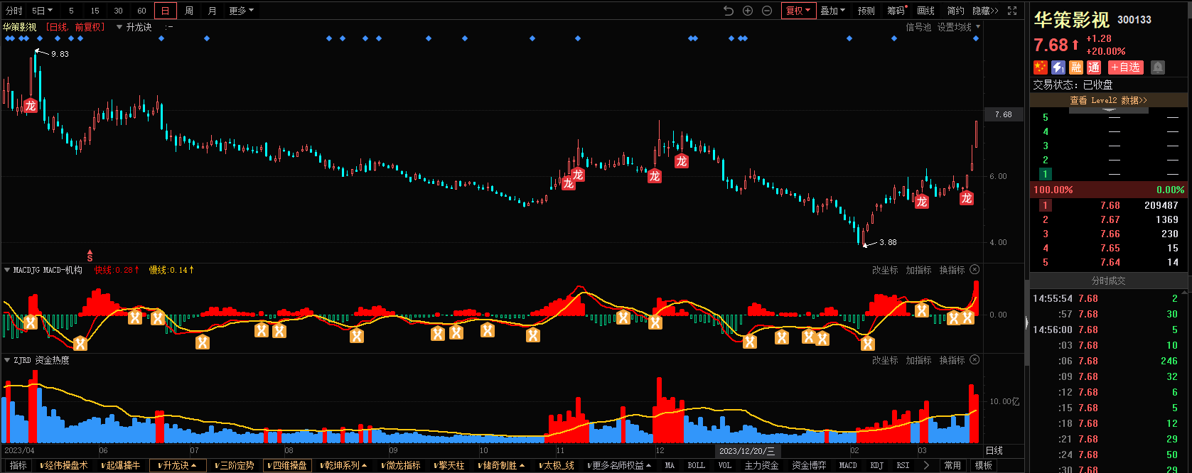 3)参考技术指标:华策影视-升龙诀指标-出现龙信号