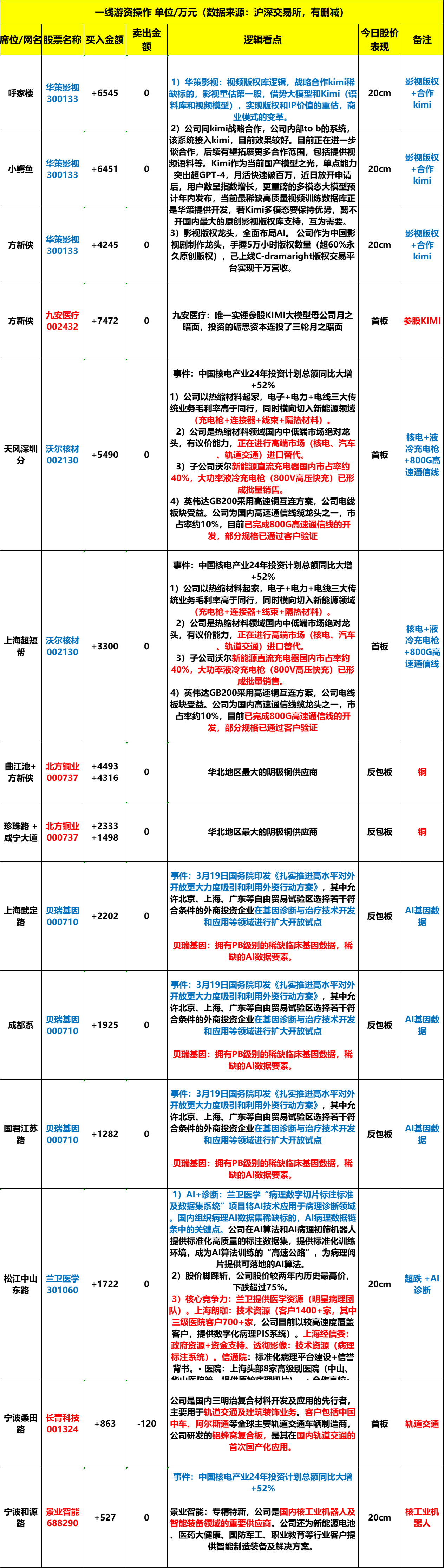 2)资金性质:今日一线游资呼家楼买入6545万元;小鳄鱼买入6451万元;方新侠买入4245万元;