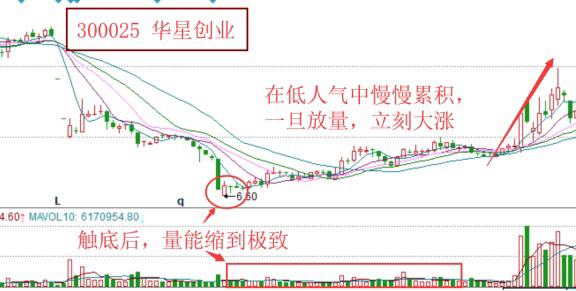 这种情况通常出现在股价经过长期的下跌之后,这时人气最低迷,即便是股价有提升,散户资金也不会有买股的冲动,而此时正式主力在黎明到来前进行布局的重要时间,接着人气的悲观悄悄的走出不为人发现的缓慢上升通道。