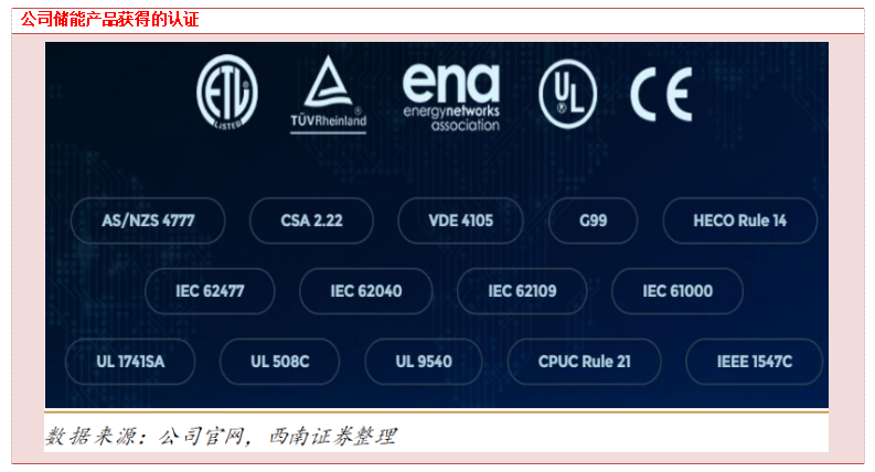 海外资质认证齐全,有望受益全球储能市场起量