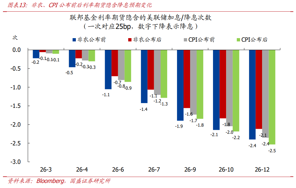 1)非农公布后,市场对美联储降息的预期有所降温。利率期货隐含的3月降息次数基本归零(0.22→0.06次),6月降息次数不足1次(1.05→0.71次),2026全年降息次数由2.4次下降至2.12次;