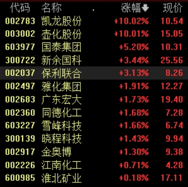 12月28日,民爆概念大幅高开,截至发稿,凯龙股份、壶化股份涨停,国泰集团涨超5%,保利联合、雅化集团、广东宏大等涨幅居前。