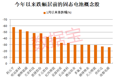今年以来,由于新能源赛道整体降温,固态电池概念整体表现也不尽如人意。数据宝统计,今年以来,固态电池概念股平均下跌12.3%,跑输同期上证指数。鹏辉能源、明冠新材、利元亨年内跌超50%。