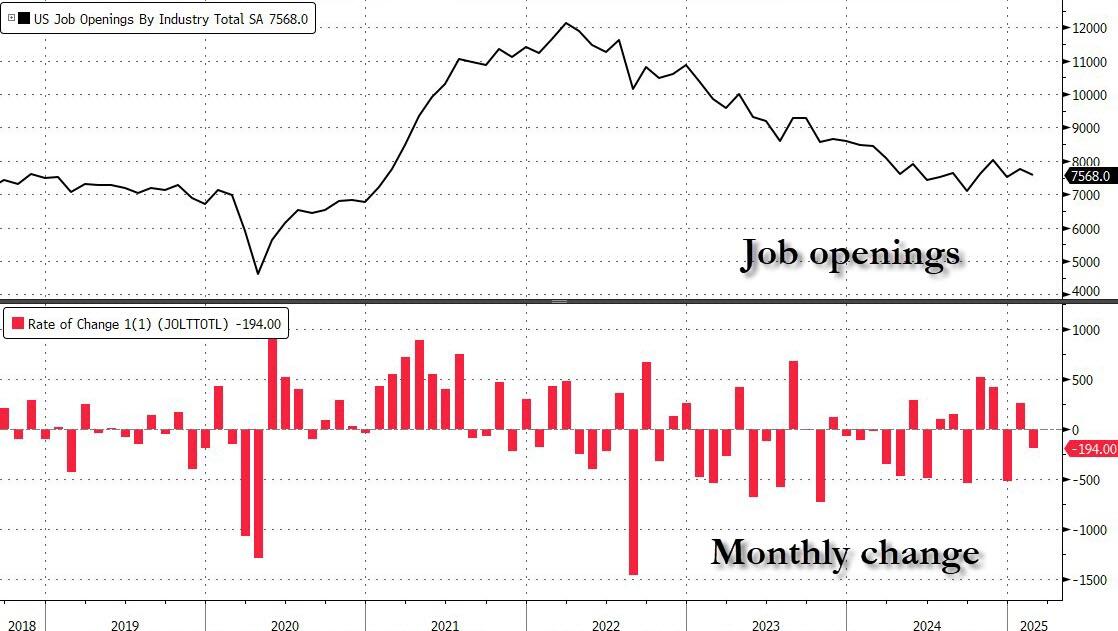 不少分析人士还指出,JOLTS数据显示美国就业市场正大致处于低招聘、低解雇的僵持状态,该报告进一步补充了早前公布的就业数据细节——尽管2月美国非农数据实现了就业岗位增长,但增幅未达预期。当前就业市场正受到双重因素冲击:特朗普政府贸易战走向的不确定性持续笼罩市场,同时由马斯克领导的DOGE成本削减工作组引发的联邦雇员失业潮加剧了就业市场波动。