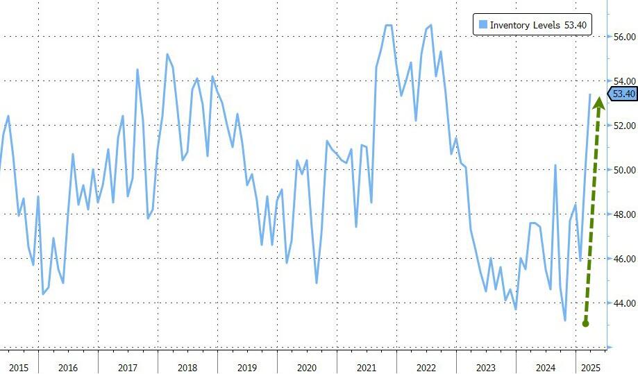此外,随着制造商“囤货”日益抢占“关税解放日”头条新闻,企业库存指标也出现激增: