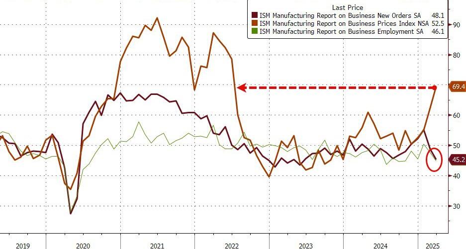 主指标下的分项数据表现其实要更为不堪。支付价格飙升至2022年6月以来的最高水平,而新订单和就业人数则大幅下降: