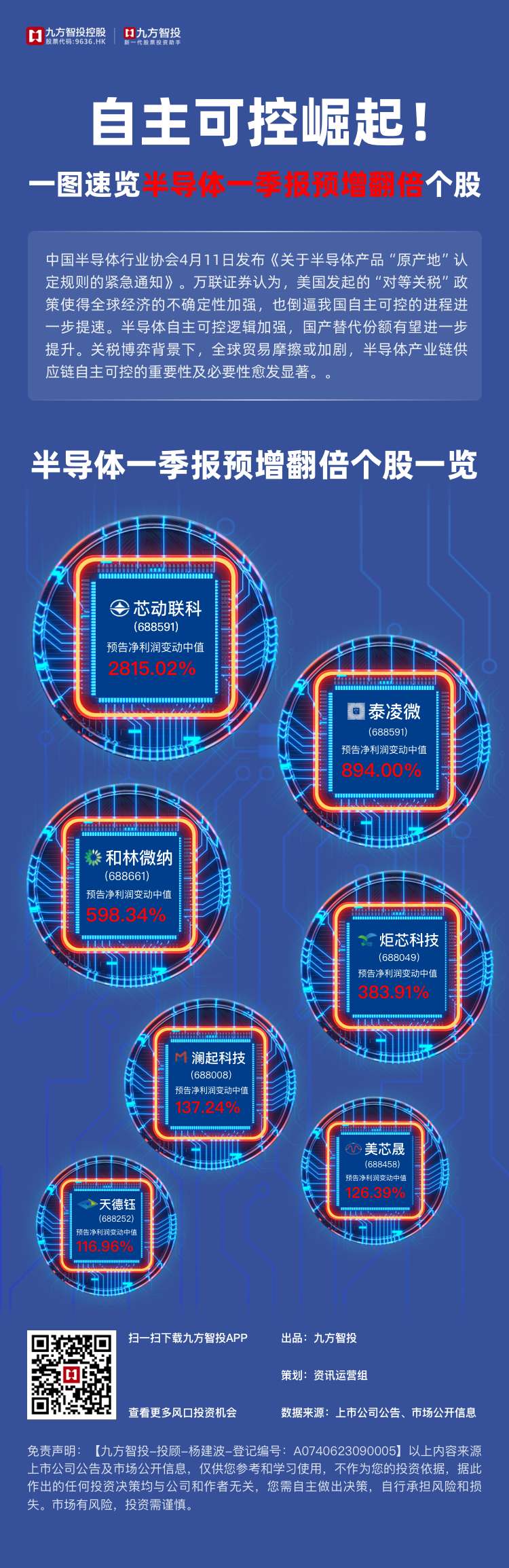 自主可控崛起!一图速览半导体一季报翻倍个股