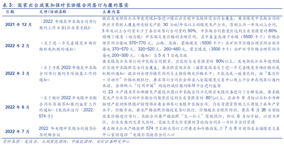 安信证券分析师周喆8月8日发布的研报中指出,2022年以来,国家发改委发布一系列举措对煤炭中长期合同签订履约情况进行专项核查。一方面控制了2022年上半年电厂用煤成本,另一方面在一定程度上也满足了火电企业用煤需求。未来,随着动力煤保供稳价政策落实力度不断加大,煤电长协煤100%履约比例有望逐步兑现,带动燃煤成本稳步下降。