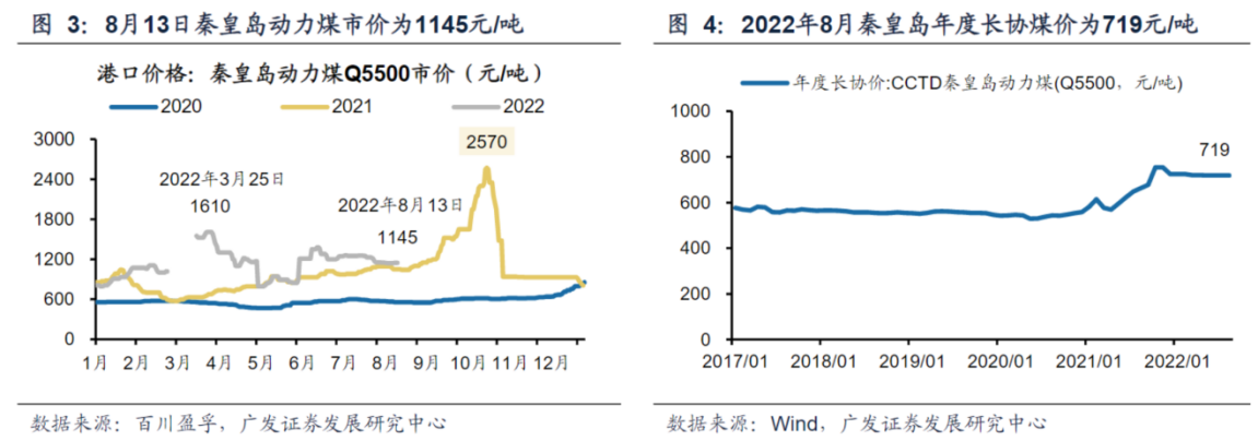 郭鹏指出,2022年至今原煤单月产量均实现超10%以上的同比增速。价格方面,2022年8月13日秦皇岛5500大卡动力煤市场价为1145元/吨,较3月高点已下降465元/吨。