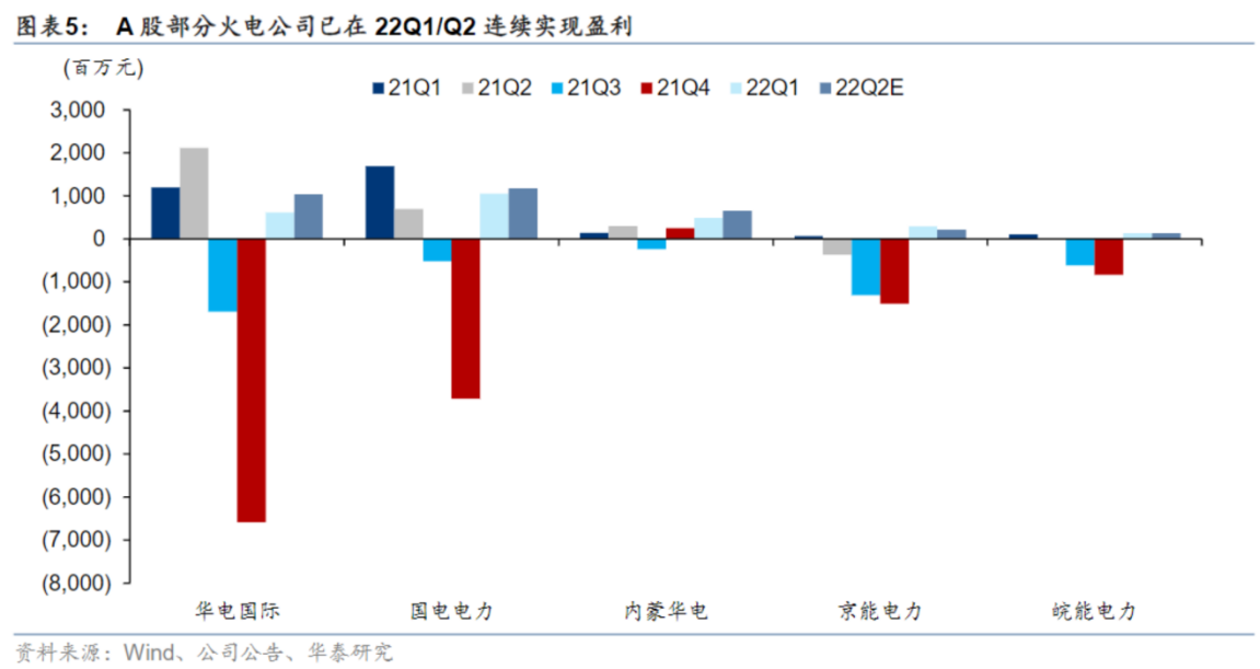 业绩方面,去年煤炭价格暴涨,煤电企业经历了史上最严重亏损年。华泰证券分析师王玮嘉等7月19日发布的研报指出,得益于市场化电价上浮超过煤价涨幅,华电国际、国电电力、内蒙华电、京能电力和皖能电力等火电公司已在22年前两个季度连续实现盈利,业绩较21年下半年大幅改善。