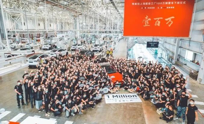 2022年8月13日,特斯拉上海超级工厂第100万辆整车下线