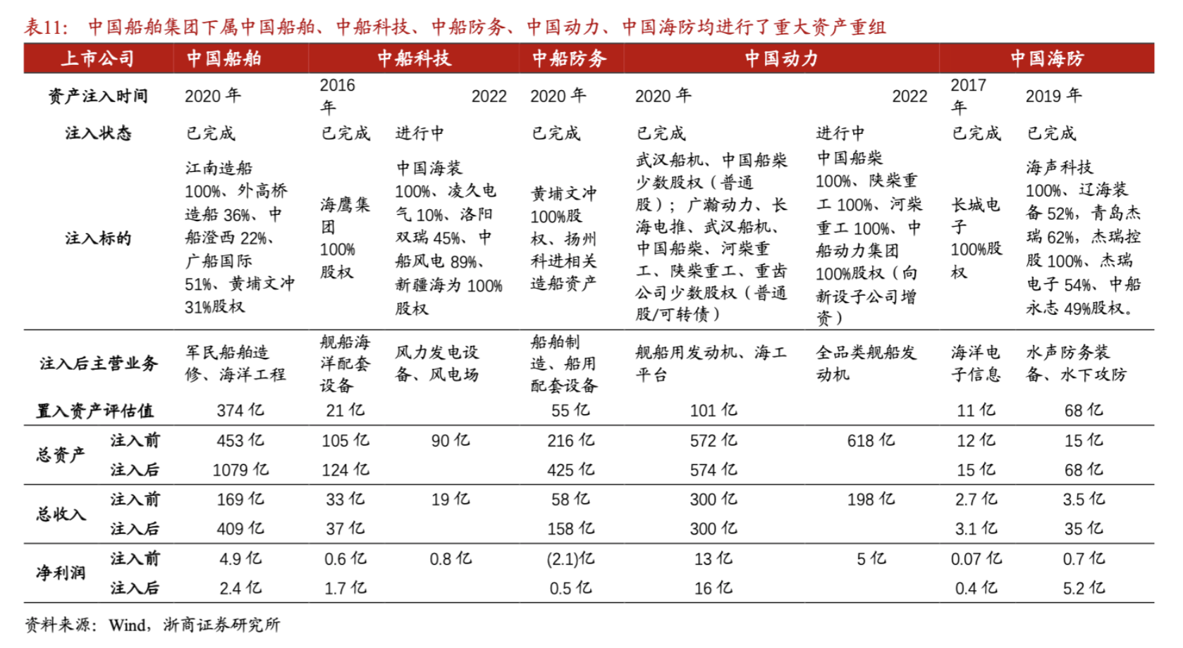 中国船舶集团由中国船舶工业和中国船舶重工于2019年重组形成,强强联合后集中了我国船舶系统设计、舰船动力、海洋工程、民船造修等各个方面,旗下拥有中国船舶、中船科技、中船防务、中国动力、中国海防多个上市平台。值得一提的是,此前韩国的现代重工和大宇重工亦试图合并,但因欧盟对该申请的拒绝而最终流产。