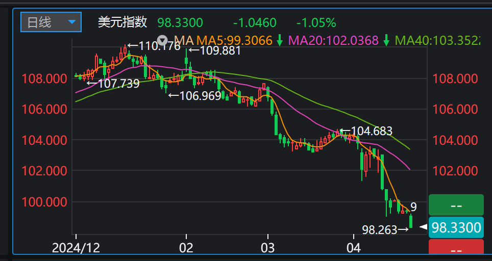 美元大跌,截至发稿日内跌幅超过1%。