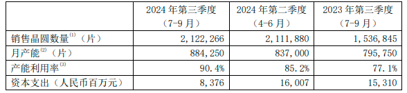 营收同环比双增背后,是12英寸产品产能的提高。据介绍,其三季度新增2.1万片12英寸月产能,促进产品结构进一步优化,平均销售单价上升。整体产能利用率持续提升至90.4%(今年Q1其产能利用率达80.8%,Q2产能利用率进一步提升至85.2%,上年同期为77.1%),毛利率提升至20.5%(上年同期为18.3%)。