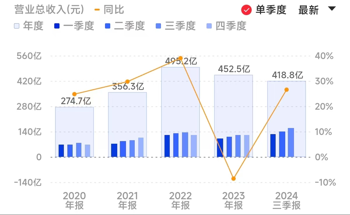 11月7日,中芯国际盘后公告,前三季度营业收入418.79亿元,同比增长26.5%;净利润27.06亿元,同比减少26.4%;扣非净利润21.99亿元,同比下降10.4%。