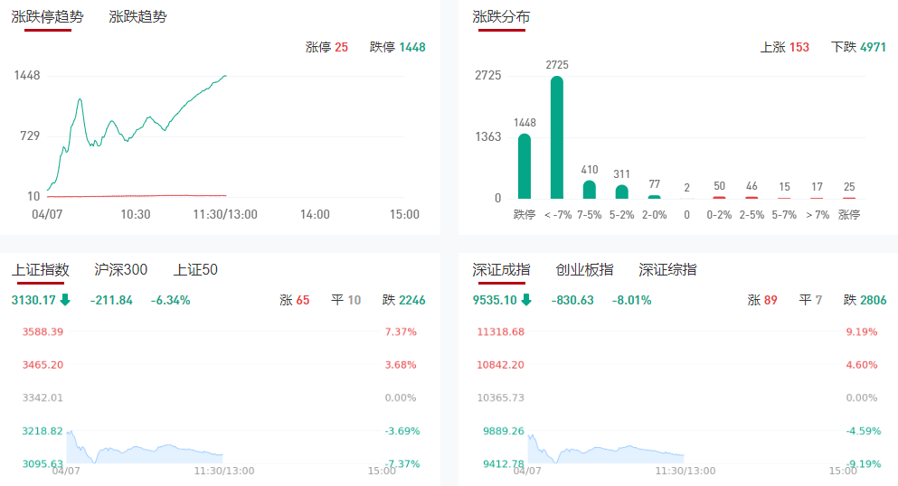 午评:沪指半日放量跌6.34% 全市场超1400股跌停